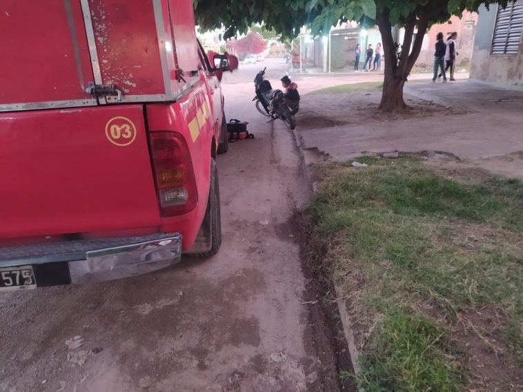 Díaz Karina circulaba en una motocicleta Appia Vectra, sin dominio, por calle Portezuelo en compañía de una menor de 3 años, y por razones que se desconocen, perdió el control cayendo del rodado.