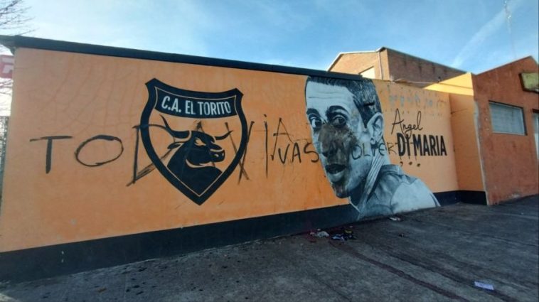 Un mural dedicado al campeón del mundo Ángel Di María, en el club El Torito, fue vandalizado luego de la eliminación de Rosario Central en la fase de grupos de la Copa Libertadores y en medio de la incertidumbre sobre el futuro del futbolista que manifestó, en varias ocasiones, su deseo de volver al club.