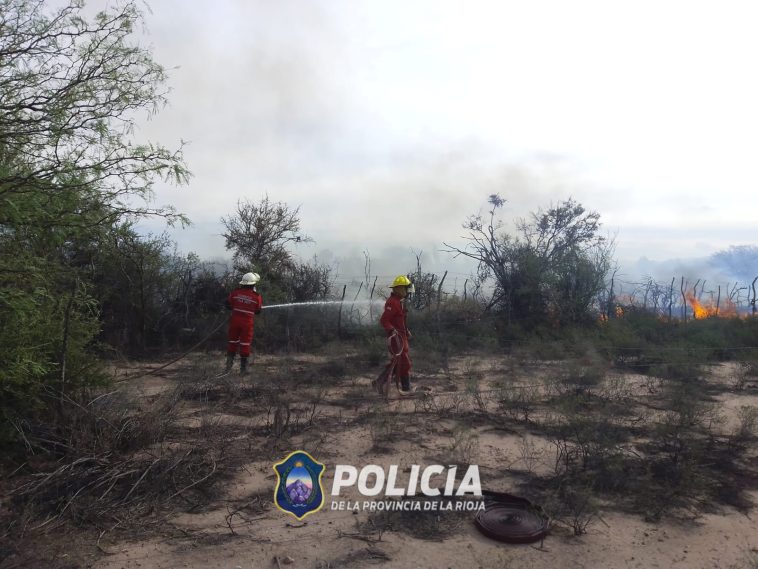 Al lugar se dirigen personal policial de esa jurisdicción y se le da participación al personal de bomberos voluntarios procediendo a sofocar el fuego, luego continúan realizando enfriamiento del lugar, para evitar que reavive hicieron guardia de cenizas, debido a la persistencia del viento zonda